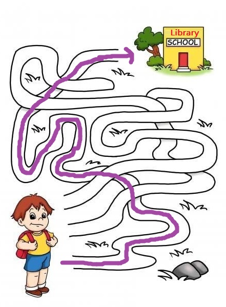 திவ்யா நூலகத்திற்குச் செல்ல விரும்புகிறாள். அவள் வீட்டிலிருந்து நூலகம் செல்வதற்கான ஒரு வழி கீழே கொடுக்கப்பட்டுள்ளது.