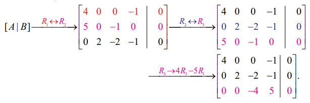 4x1 – x4 = 0, 2x2 – 2x3 – x4 = 0, –4x3 + 5x4 = 0.