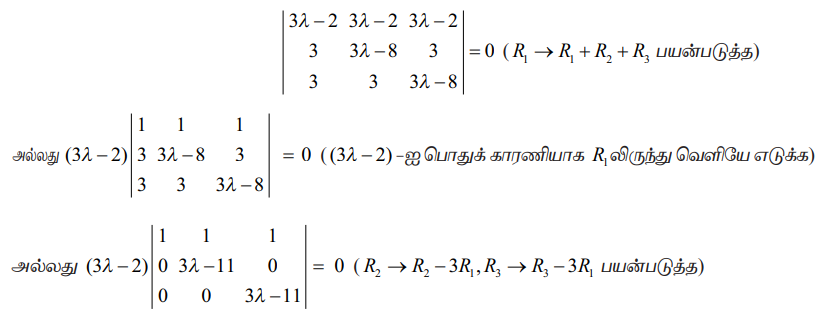 அல்லது (3λ − 2) (3λ − 11)2 0. எனவே λ = 2 / 3 மற்றும் λ = 11 / 3.