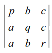 px + by + cz = 0, ax + qy + cz = 0, ax + by + rz = 0 என்ற சமன்பாடுகளின் தொகுப்பு வெளிப்படையற்றத் தீர்வு பெற்றுள்ளது மற்றும் p ≠ a, q ≠ b, r ≠ c, எனில்