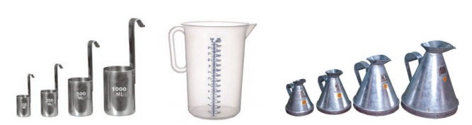 கொள்ளளவினை அளக்கப் பயன்படும் சில திட்டக் கருவிகள் கீழே கொடுக்கப்பட்டுள்ளன. இவற்றைப் பால் விற்பனைக் கடைகள், மளிகை கடைகள் போன்ற இடங்களில் நீங்கள் காணலாம். நாம் இவற்றைக் கொண்டு தண்ணீர், எண்ணெய், பால், பெட்ரோல் போன்ற திரவங்களை அளக்கலாம்.