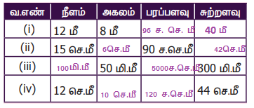 ● இணைகரம், சாய்சதுரம், சரிவகம் ஆகியவற்றின் சுற்றளவையும் பரப்பளவையும் புரிந்துகொள்ளுதல்.