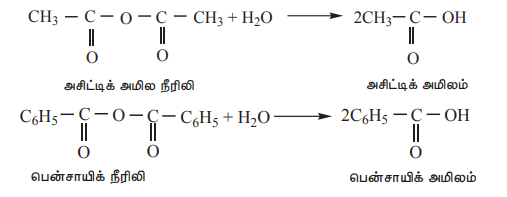 b) அமில நீரிலிகளை நீராற்பகுக்கும்போது அவை கார்பாக்சிலிக் அமிலங்களை தருகின்றன.