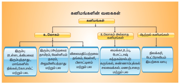 வரை நாம் பயன்படுத்துகின்ற அனைத்துப் பொருள்களையும் உருவாக்க கனிமங்கள் பயன்படுத்தப்படுகின்றன.
