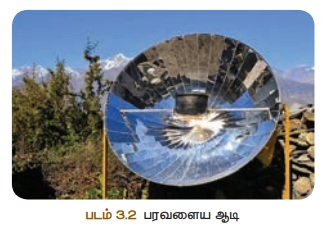 பரவளைய அழைக்கப்படும் பரவளைய ஆடிகள் ஒளி ஆற்றல், வெப்ப ஆற்றல்,