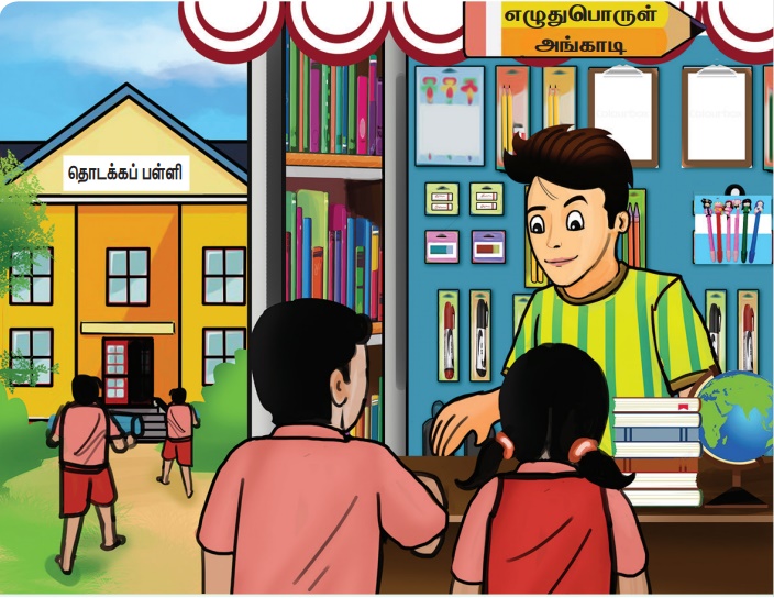 1. எழுதுபொருள் அங்காடியில் நீ காணும் பொருள்களைக் கூறுக.