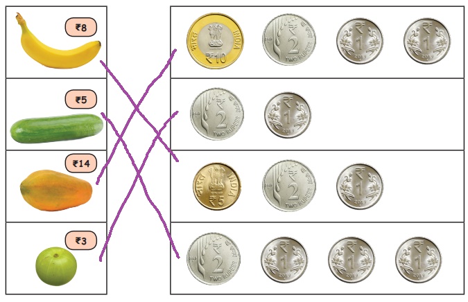 பொருள்களுக்குரிய சரியான பணமதிப்பைப் பொருத்துக.