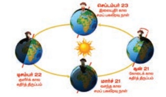 புவி சூரியனைச் சுற்றிவருவதால் மார்ச் 21ஆம் தேதி முதல் செப்டம்பர்