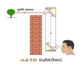 பெரிஸ்கோப் ஆகும். ஒளி எதிரொளித்தல் விதிகளின் அடிப்படையில் இக்கருவியானது செயல்படுகிறது.