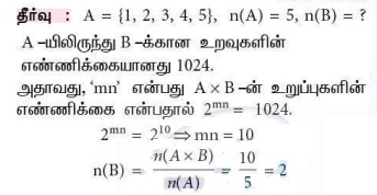 7. n(A) = m மற்றும் n(B) = n என்க. A -லிருந்து B -க்கு வரையறுக்கப்பட்ட வெற்று கணமில்லாத உறவுகளின் மொத்த எண்ணிக்கை