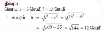 3. ஆரம் 5 செ.மீ மற்றும் சாயுயரம் 13 செ.மீ உடைய நேர்வட்டக் கூம்பின் உயரம்