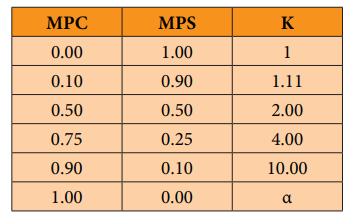எண் வடிவில் MPCயின் மதிப்பு 0.75 என்றால் MPS இன் மதிப்பு 0.25 ஆகவும் K மதிப்பு 4 ஆகவும் இருக்கும்.