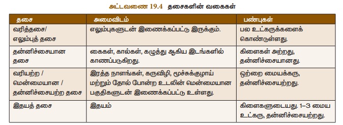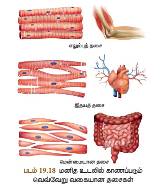 உயர்நிலை முதுகெலும்பிகளில் மூன்று வகையான தசைகள் காணப்படுகின்றன.