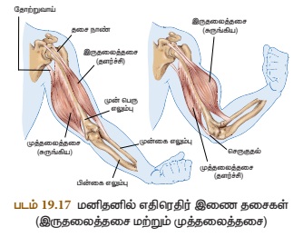 எனப்படும். இரண்டு தசைகளும் எதிராக செயல்படுகின்றன. இருதலைத்தசை சுருங்கும்போது கையின்