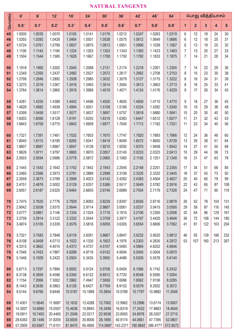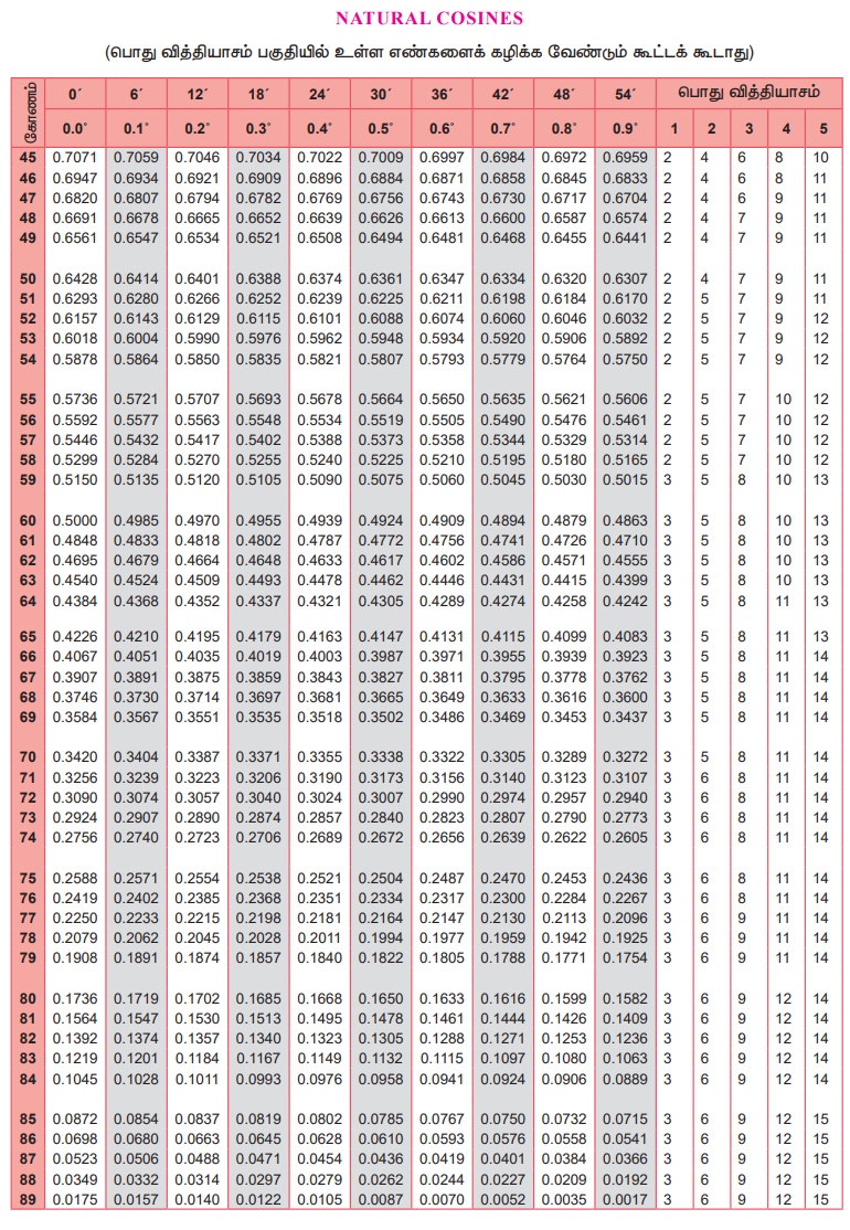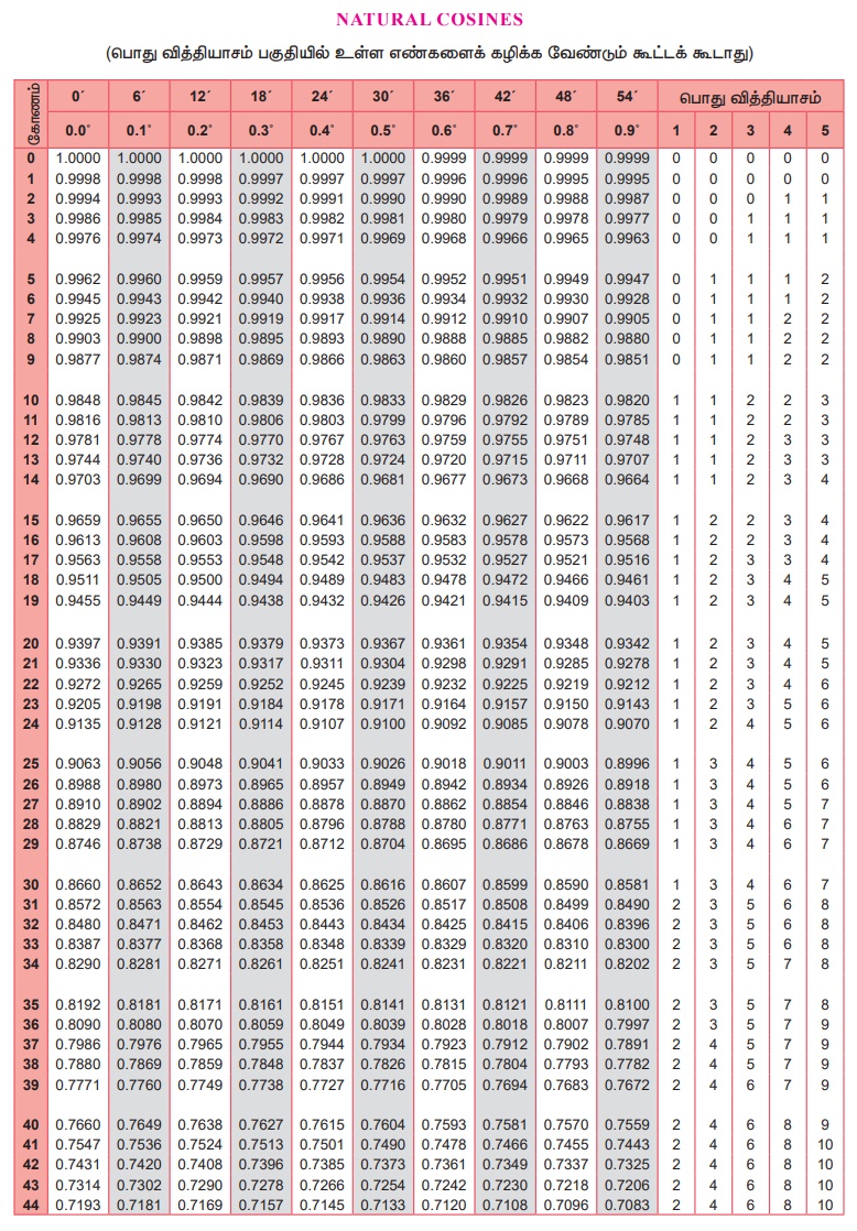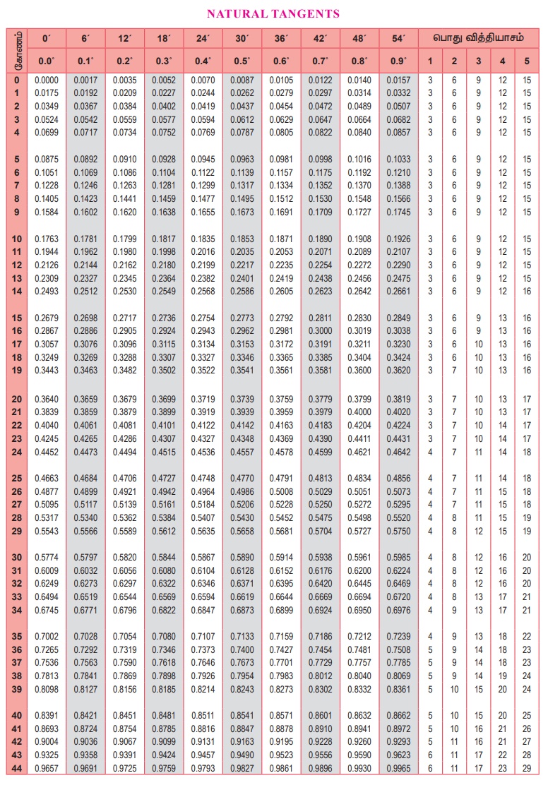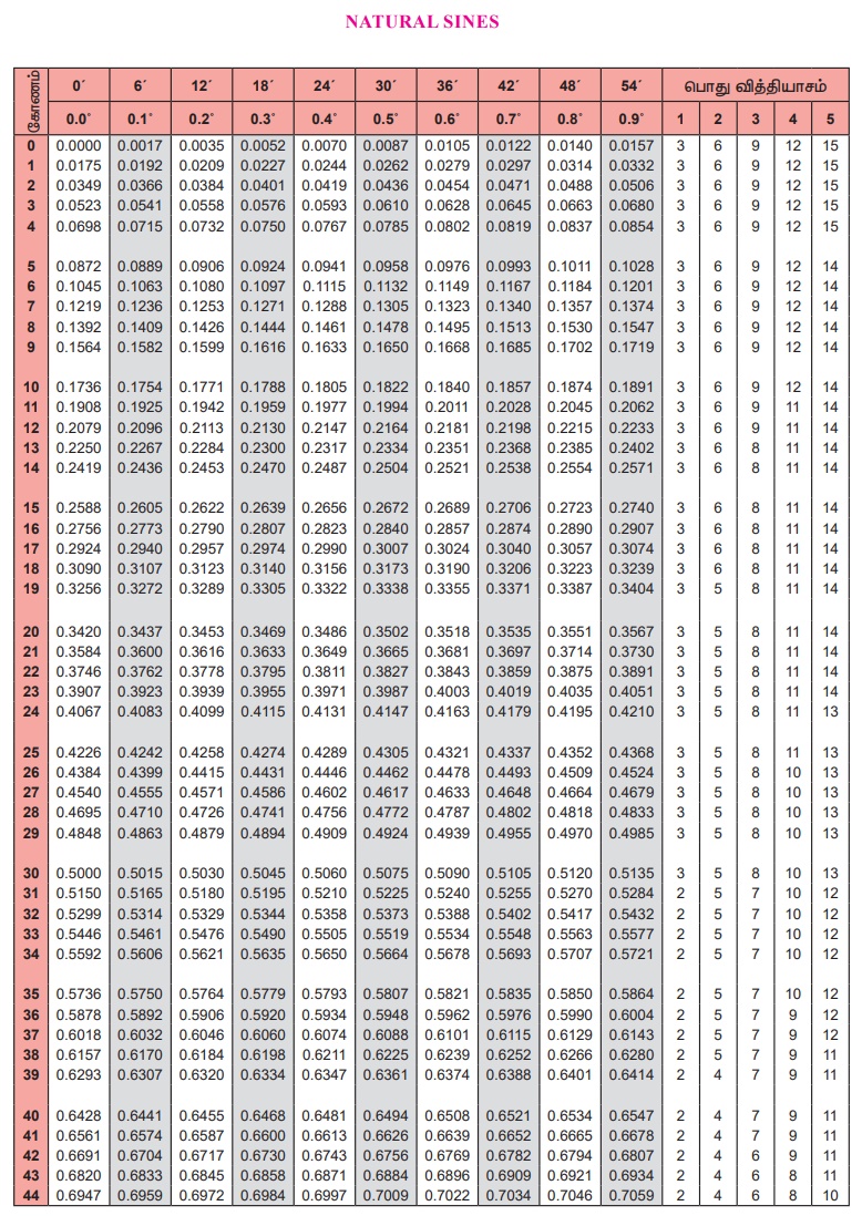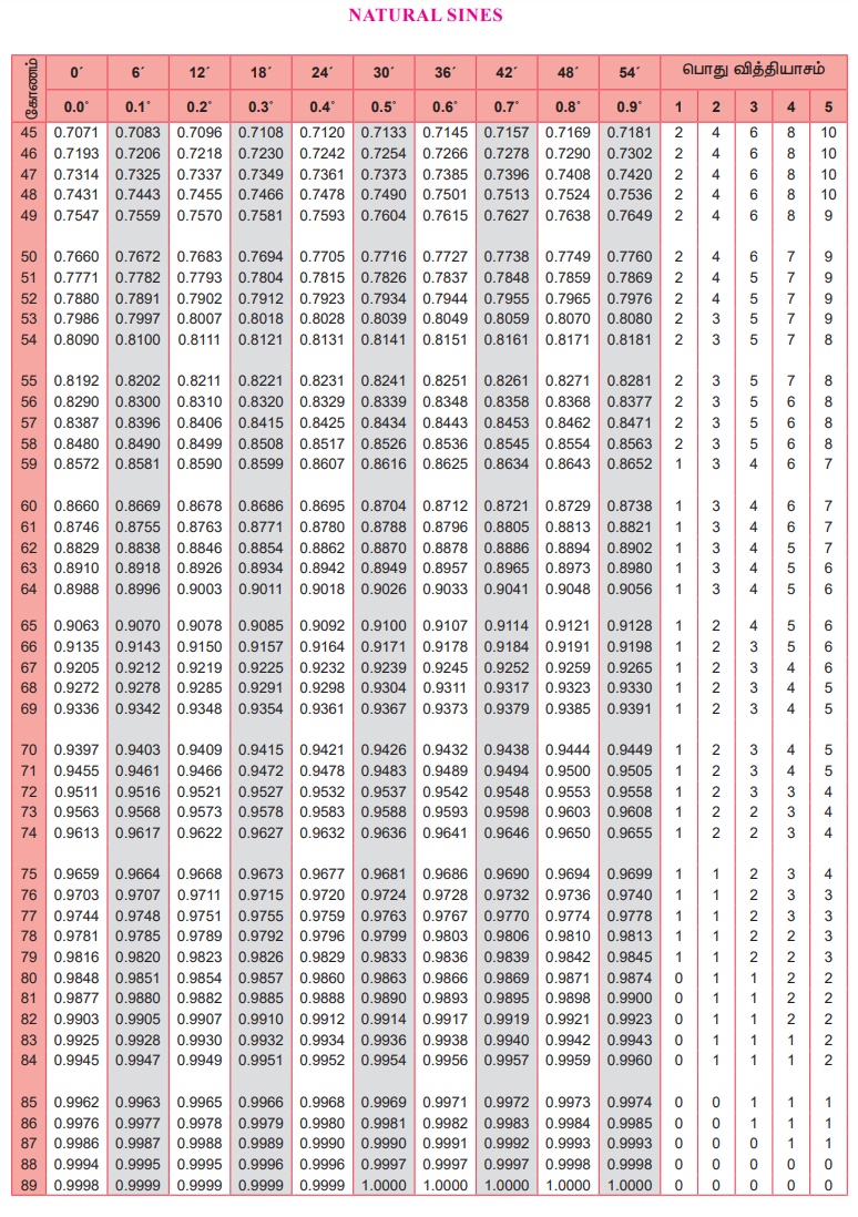 முக்கோணவியல் | கணக்கு - இயற்கை சைன்கள் , கொசைன்கள், தொடுகோடு - அட்டவணை | 9th Maths : UNIT 6 : Trigonometry