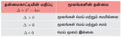 இருபடிச் சமன்பாட்டின் மூலங்களின் தன்மை (Nature of Roots of a Quadratic Equation)
