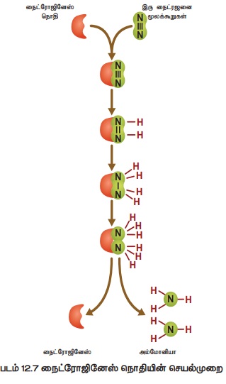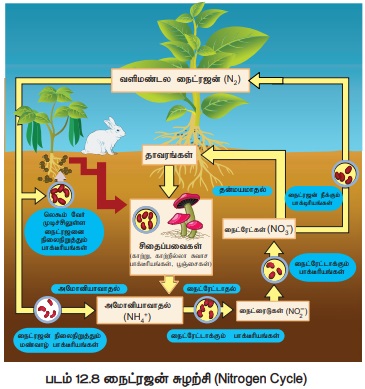 நைட்ரஜன் சுழற்சியின் மொத்த செயல்கள் படம் 12.8 ல் கொடுக்கப்பட்டுள்ளது.