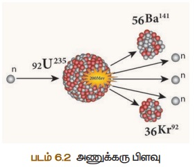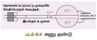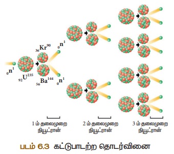 பயன்படுத்தி அணு குண்டு வெடித்தல் நிகழ்த்தப்படுகிறது. படம் 6.3 கட்டுபாடற்ற தொடர்வினையினைக் குறிக்கிறது.