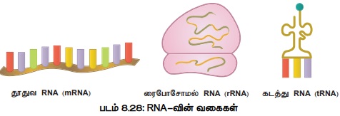 • தூதுவ RNA (mRNA) : அமினோ அமிலங்களில்