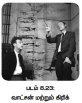வாட்சன் மற்றும் ஃபிரான்சிஸ் கிரிக் DNA-வின் இரட்டைத் திருகுச் சுருள் அமைப்பிற்கான