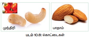 கொட்டைகள் கடினமான ஓட்டுக்குள் உண்ணக்கூடிய பருப்பைக் கொண்ட எளிய உலர் கனியாகும். அவற்றில் ஆரோக்கியமான கொழுப்புகள், நார்ச்சத்து, புரதம், வைட்டமின்கள், தாதுக்கள் மற்றும் எதிர் ஆக்ஜினனேற்றிகள் (antioxidants) அதிகளவு நிறைந்துள்ளன. இப்பாடத்தில் சில முக்கியமான கொட்டைகள் குறித்துக் கீழே விளக்கப்படுகின்றன.