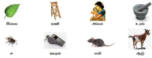 வரிசையில் பொருட்களின் பெயர்கள். அம்மா, ஆடு, இலை, ஈ, உரல், ஊதல், எலி, ஏணி