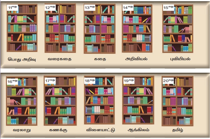 vi) எனக்குப் பொது அறிவு நூல்கள் பிடிக்கும். அவை 13வது அலமாரியில் உள்ளன.