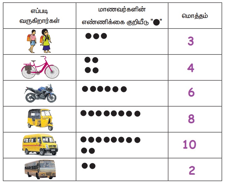 தகவல் செயலாக்கம் | பருவம் 1 அலகு 4 | 1 ஆம் வகுப்பு கணக்கு - தகவல்களை ஒழுங்கமைத்தல் | 1st Maths : Term 1 Unit 4 : Information Processing