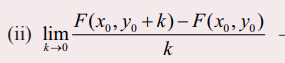 (ii) ன் எல்லை மதிப்பு காணத்தக்கது எனில் (x0 , y0) ∈ A இல் - F-க்கு y-ஐ பொருத்த பகுதிவகைக்கெழு உள்ளது எனலாம். இந்த எல்லை மதிப்பு ∂F/∂y (x0 , y0) எனக்குறிக்கப்படும் .... (11)