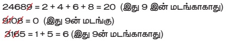 2. 9களின் நீக்கல் முறையில் கணக்குகளைச் சரிபார்த்தல்.