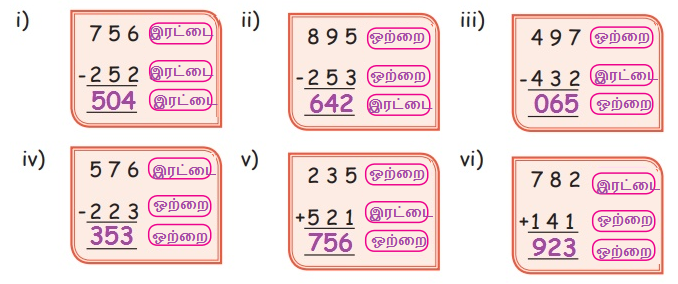iii) ஒற்றை எண் - இரட்டை எண் = ஒற்றை எண்