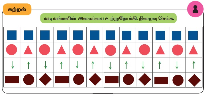 அமைப்புகள் | பருவம் 2 அலகு 3 | 1 ஆம் வகுப்பு கணக்கு - வடிவங்களில் அமைப்புகள் | 1st Maths : Term 2 Unit 3 : Patterns