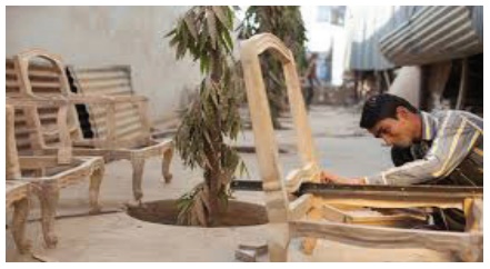 தச்சர் இருக்கையைத் தயாரிக்கத் தேவையான மரக்கட்டையின் நீளத்தை அளத்தல்.