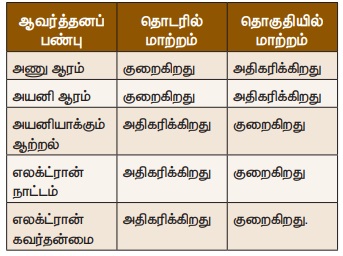 தருகின்றது. இப்பகுதியில் பின்வரும் ஆவர்த்தன பண்புகளைப் பற்றி அறியலாம்.