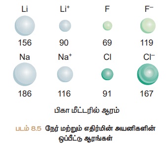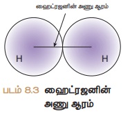 உள்ள தூரத்தின் பாதியே உலோக ஆரம் எனப்படும். படம் 8.2