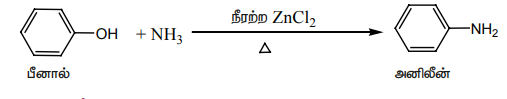 நீரற்ற ZnCl2 முன்னிலையில் பீனால் அம்மோனியவுடன் வினைப்பட்டு அனிலீனை தருகிறது.