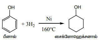 பீனாலை வினையூக்கி முன்னிலையில் ஹைட்ரஜன் ஏற்றம் செய்யும் போது வளைய ஹெக்சனால் கிடைக்கிறது.