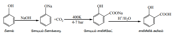 2) கீழ்கண்ட பொருட்கள் தயாரிக்க பீனால்கள் துவக்கப்பொருளாக பயன்படுகிறது.