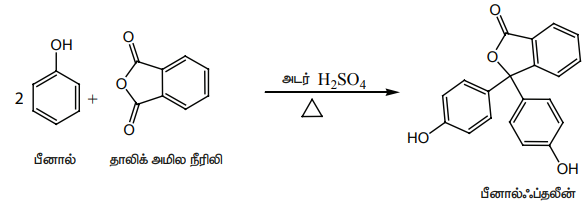 அடர் H2SO4 முன்னிலையில் பீனால் தாலிக் நீரிலியுடன் வினைப்பட்டு பீனால்ப்தலீன் கிடைக்கிறது.