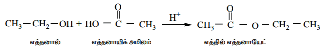 ஆல்கஹால் ஒரு அமிலத்தின் முன்னிலையில் கார்பாக்சிலிக் அமிலங்களுடன் வினைபுரிந்து எஸ்டர்களைக் கொடுக்கும்