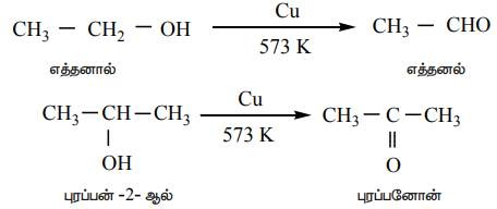 ஓரிணைய மற்றும் ஈரிணைய ஆல்கஹால்களின் ஆவியினை நன்கு வெப்பப்படுத்தப்பட்ட தாமிரத்தின் வழியே செலுத்தும் போது, ஹைட்ரஜன் நீக்கம் நடைபெற்று ஆல்டிஹைடுகள் அல்லது கீட்டோன்கள் உருவாகின்றன.