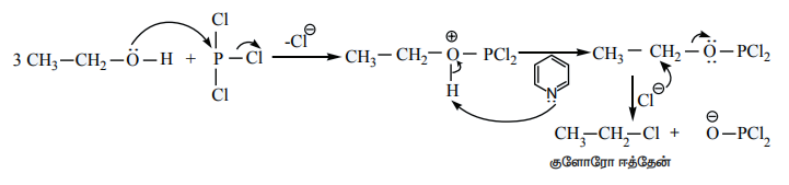 வினைவழிமுறை : பாஸ்பரஸ் ட்ரைகுளோரைடின் மீதான SN2 வினை குளோரோ ஈத்தேன்.