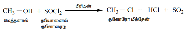 ஒரு ஆல்கஹால் ஆல்கைல் ஹைலைடாக மாற்றப்படுவதும் தயோனைல் குளோரைடைப் பயன்படுத்தி செயல்படுத்தப்படலாம்