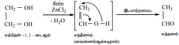2. நீர்த்த கந்தக அமிலம் அல்லது நீரற்ற ZnCl2 அதிக அழுத்தத்தில் மூடப்பட்ட குழாயில் வெப்பப்படுத்தும் போது அசிட்டால்டிஹைடு உருவாகிறது.