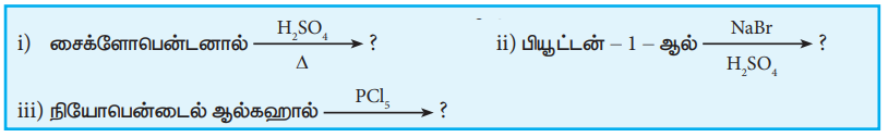 பின்வரும் வினைகளில் வினைவிளை பொருட்களைக் கண்டறிக. அவைகளின் IUPAC பெயர்களை எழுதுக. மேலும் வினையின் வினை வழிமுறையினைக் குறிப்பிடுக.