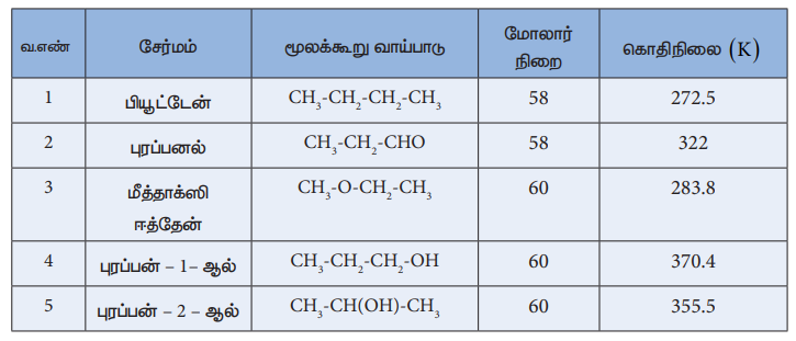 அட்டவணை : ஆல்கஹால்களின் கொதிநிலை பிற கரிமச் சேர்மங்களுடன் ஒரு ஒப்பீடு