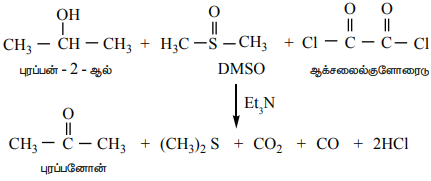 இம்முறையில், டைமெத்தில் சல்பாக்ஸைடு (DMSO) ஆனது ஆக்சிஜனேற்றியாகப் பயன்படுகிறது. இது ஆல்கஹால்களை ஆல்டிஹைடுகள் கீட்டோன்களாக மாற்றமடையச் செய்கிறது. இம்முறையில், ஆல்கஹாலை DMSO மற்றும் ஆக்சலைல் குளோரைடுடன் வினைபுரியச் செய்து பின் ட்ரை எத்தில் அமினுடன் சேர்க்கை வினை நிகழ்த்தப்படுகிறது.