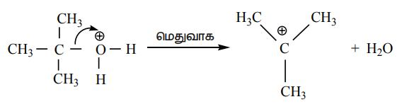 படி 2 : ஆக்சோனியம் அயனி பிரிகையுற்று கார்பன் நேர் அயனி உருவாதல்