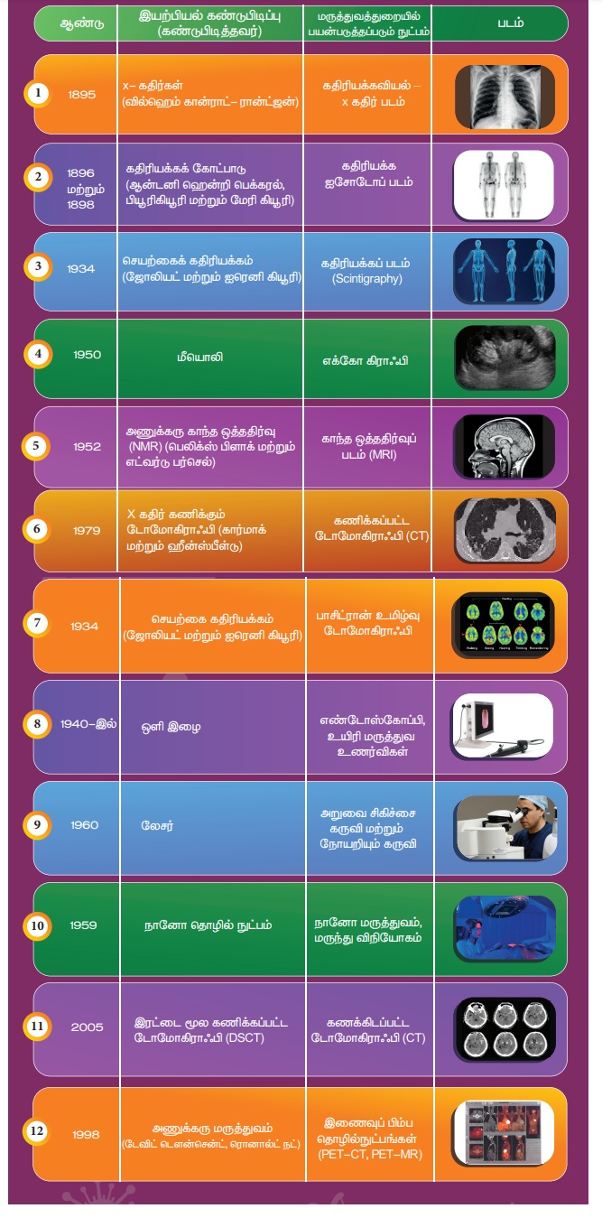 மருத்துவ துறையின் வளர்ச்சியானது கீழே காட்டியுள்ளவாறு இயற்பியலின்