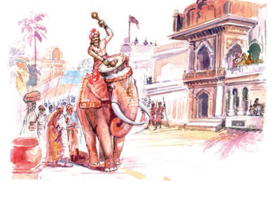 ஒளி வீசும் வாளேந்திய காலாட் படையினரும் தேர்ப்படையினரும் குதிரைப் படையினரும் யானைப் படையினரும் சூழ்ந்து வர, அகன்ற முரசினை அறைந்து, "பசியும் நோயும் பகையும் நீங்கி மழையும் வளமும் எங்கும் பெருகுவதாகுக" என வாழ்த்தி மேற்கண்ட செய்திகளை நகருக்கு முரசறைவோன் அறிவித்தான்.